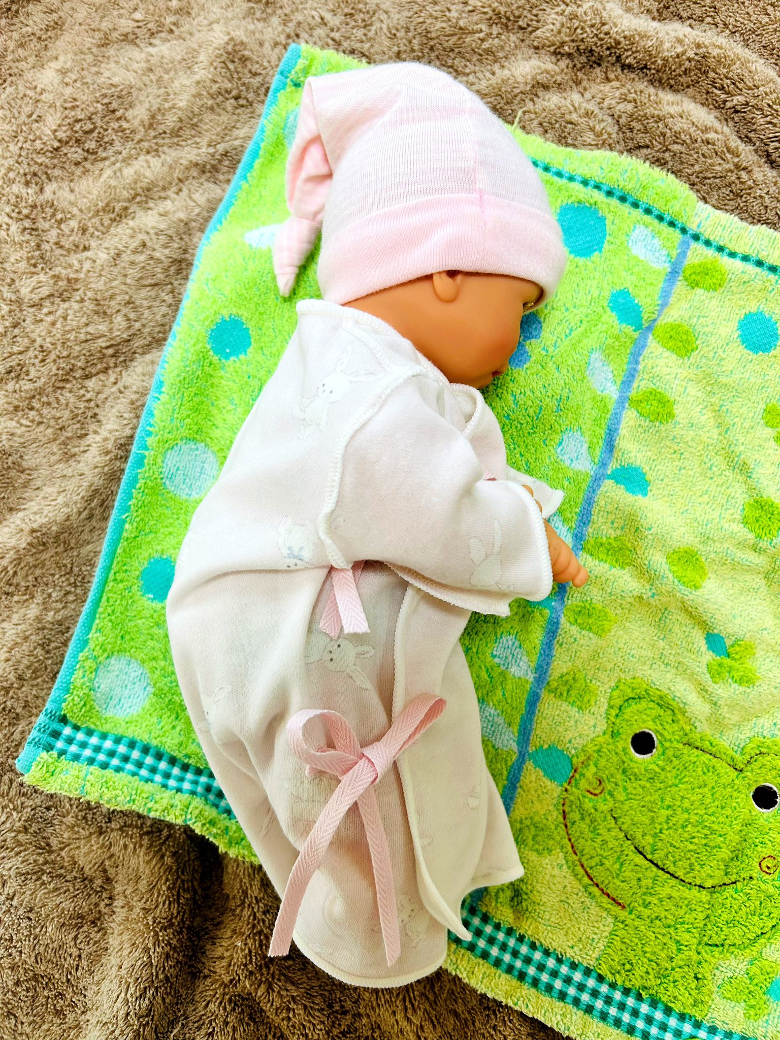 現在1100グラム位の娘は、包み込まれると落ち着く為、NICUではタオルでくるんでいましたが、お洋服を着せてはどうか?という事になりました!