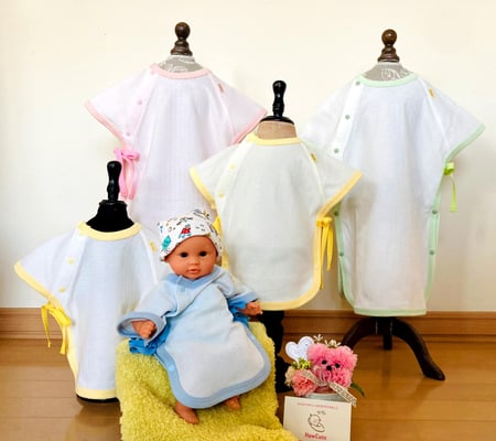 届いた肌着はどれも可愛くて、丁寧に縫ってあり、サイズもピッタリ!看護師さん達からはどこで見つけてきたのかと、とても評判でうれしいです😊